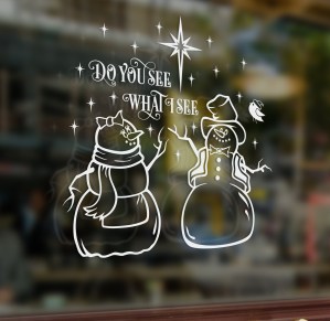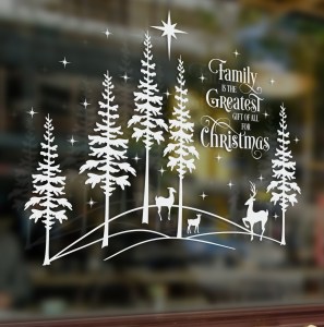 The new vinyl design has a positive and negative cut affect. This way it looks great on glass in white vinyl or on a chalkboard. In black vinyl it would look great backlit on glass or on a white wall. The design also looks great in print or foiled for christmas cards.